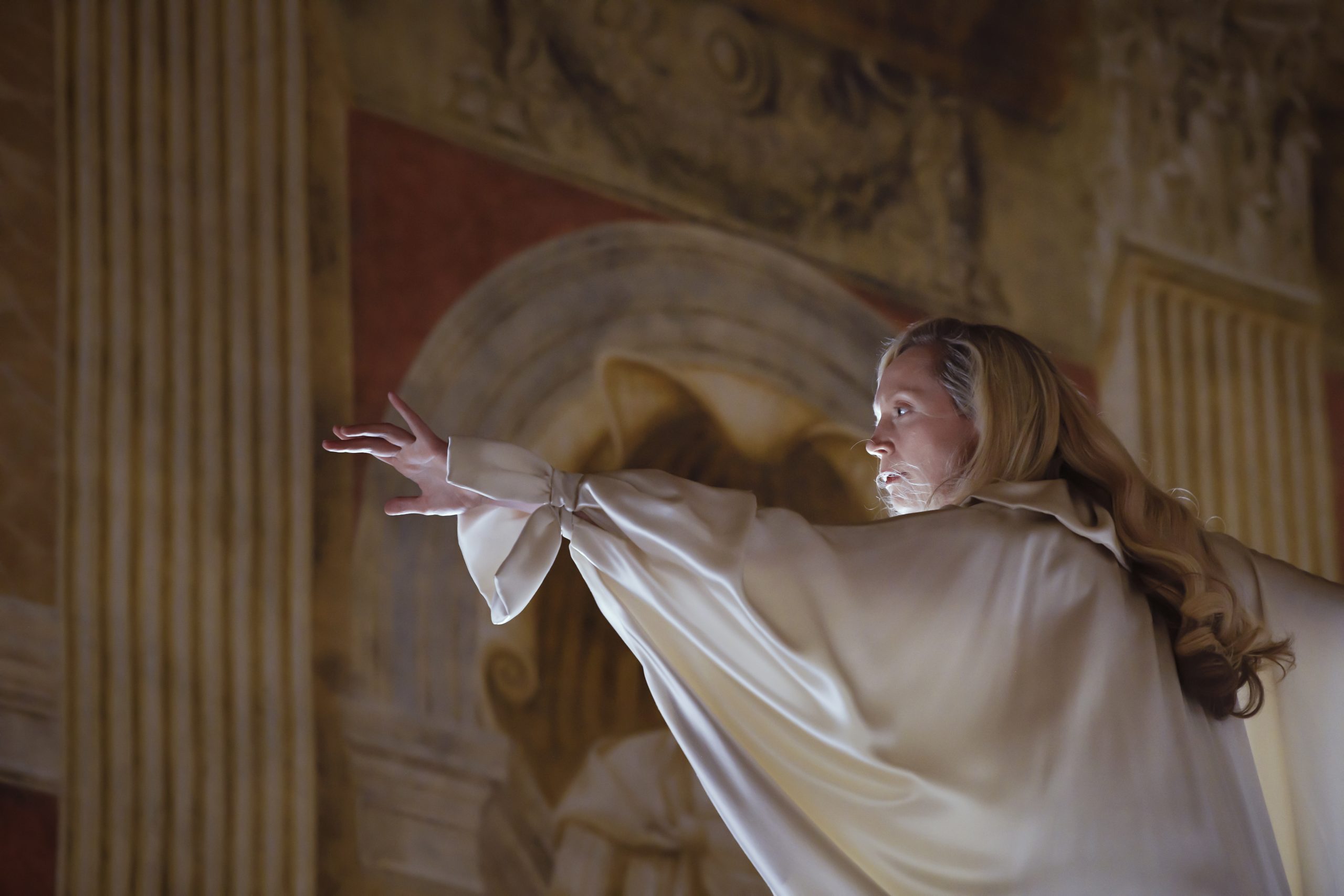 The Palazzo’s striking frescos were an inspiration to create two goddesses – played by Gwendoline Christie and Sheila Atim – drawing from literary sources of Donna Haraway’s philosophical and political work Staying with the Trouble (2016) that