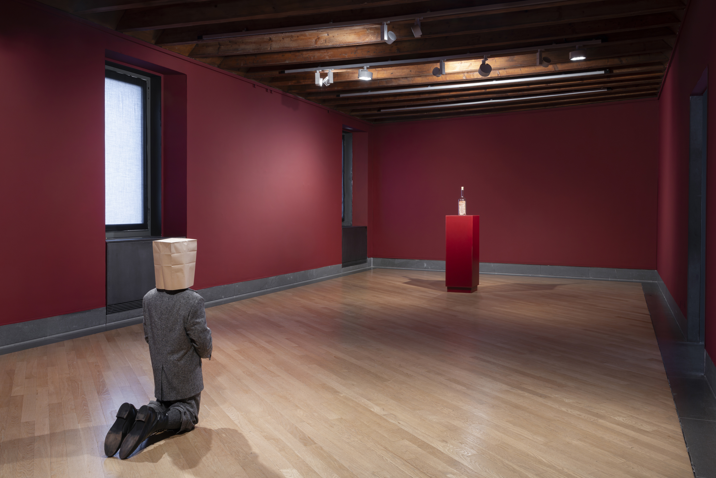 In the Sala delle Capriate of the Palazzo della Ragione, since 2018 the summer home of GAMeC in the heart of Bergamo Alta, is the work November: a sculpture that stimulates a reflection on our relationship with marginality, justice, and decadence, but also on the sense of freedom that, at times, the weakest and most vulnerable can embody.